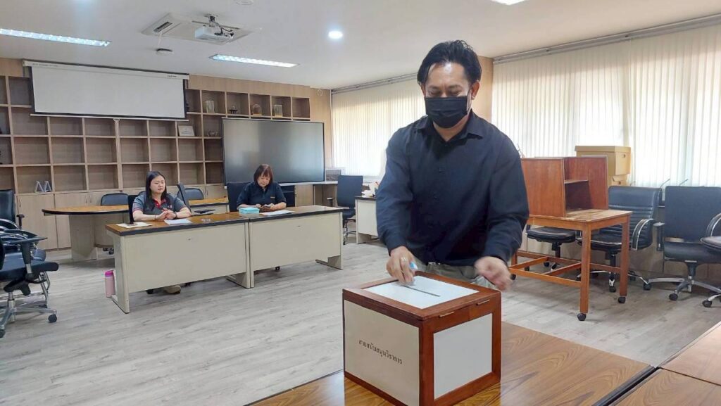 วันที่ 22 ธันวาคม 2568 บุคลากรสำนักพัฒนาเทคนิคศึกษา (สมาชิกกองทุนสำรองเลี้ยงชีพ) จำนวน 47 คน ใช้สิทธิ์ลงคะแนนเลือกตั้งคณะกรรมการกองทุนสำรองเลี้ยงชีพ ฝ่ายสมาชิก ระหว่างเวลา 10.00 – 14.00 น. ณ ห้องประชุม 326 คณะวิศวกรรมศาสตร์ อาคาร 81 (หน่วยเลือกตั้งที่ 5)
